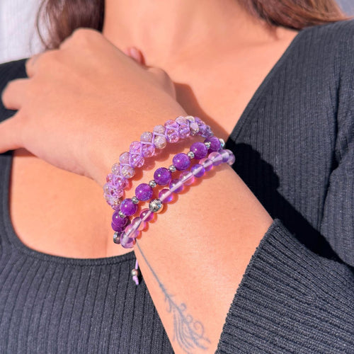 Violet | Silver | Mermaid Glass Macrame Bead Bracelet $479.00$264.00