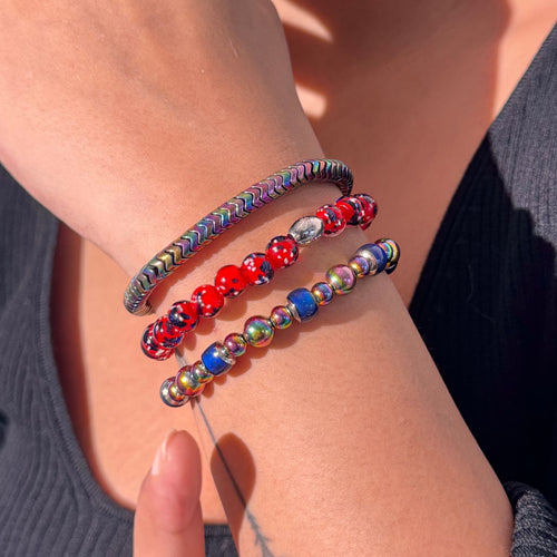 Serpentine | Rainbow Hematite x Unicorn Silver | Double Wave Bracelet $479.00$256.00